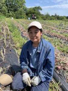 May Htoo also joined us this year. She’s been harvesting onions for days and sings away while working.