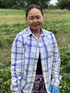 Yue Mi is a member of Hickory Hill Farms’ Karen family. She has worked for Hickory Hill for seven years. The Karen people are Burmese refugees who came to the United States through Thailand. The group that works at Hickory Hill is made up of Christian refugees. They are hard workers and extremely dependable.